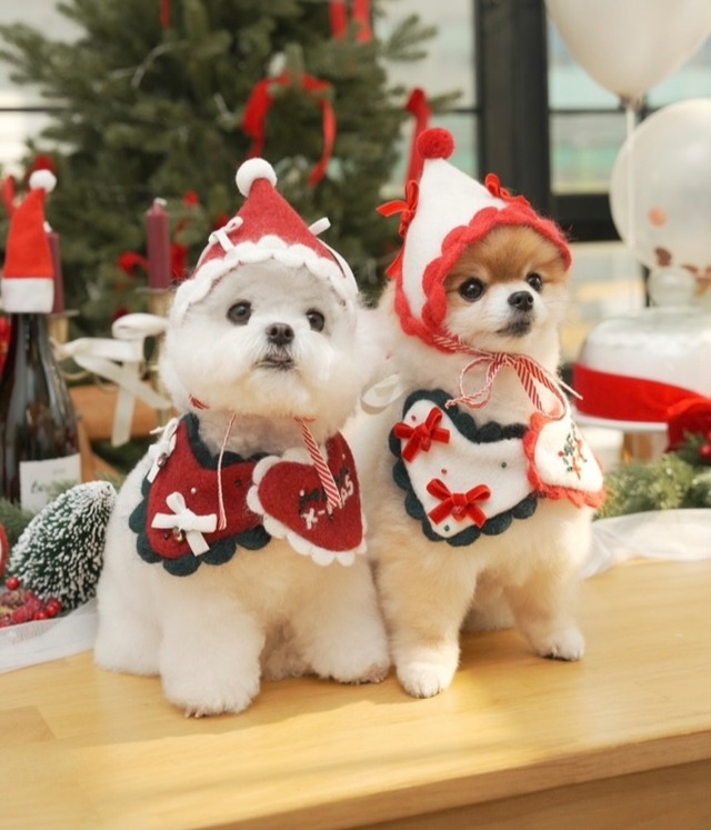 【即納】《lebooleboo》 Christmas Heart Cape 2color ケープサイズについて ケープはS、M、Lの3つのサイズで製作されています。 下記のケープの長さを参考にご注文ください。 先端を結ぶデザインのため、全体的に少しゆとりのある作りです。 おすすめサイズの目安 2.5kg未満 Sサイズ 2.5〜5kg未満 Mサイズ 5〜10kg Lサイズ ※帽子は即納がございません。 帽子サイズについて 帽子はSとLの二つのサイズで製作されています。 下記のサイズを参考にご注文ください。 にした目安です。 ご購入の際は必ず首回りの実寸とサイズ表をご確認ください。 【color】 White red 【素材】 【サイズ】 cape Sサイズ ハートの幅19cm 高さ9cm 左ひもの長さ28cm 右ひもの長さ28cm Mサイズ ハートの幅21cm 高さ10cm 左ひもの長さ28cm 右ひもの長さ28cm Lサイズ ハートの幅23cm 高さ11cm 左ひもの長さ33cm 右ひもの長さ33cm 帽子 帽子の横幅(断面) Sサイズ 24cm Lサイズ 27cm ※1〜3cmの誤差が生じる場合がございます。 capeモデル着用情報 すべてのモデルは2kg前半から2kg後半の体重です。 マルチーズ タンコン 首回り18cm Sサイズ着用 プードル クッキー 首回り22cm Mサイズ着用 ビション トア 首回り22cm Mサイズ着用 ビション バビ 首回り23cm Mサイズ着用 帽子 モデル着用情報 全員2kg前半から2kg後半 マルチーズ タンコン Sサイズ着用 ビション トア Sサイズ着用 ポメラニアン チェリー Sサイズ着用 【ご注意】 洗濯はぬるま湯で手洗いしてください。 ウール専用洗剤の使用をお勧めします。 洗濯機、温水、不可