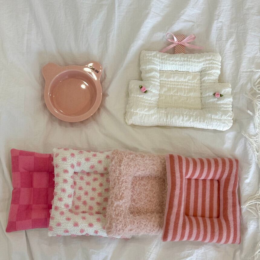 ふわふわの白い生地に空色とピンク色のバブルの形をつけてキュートでユニークなポイントで仕上げました。