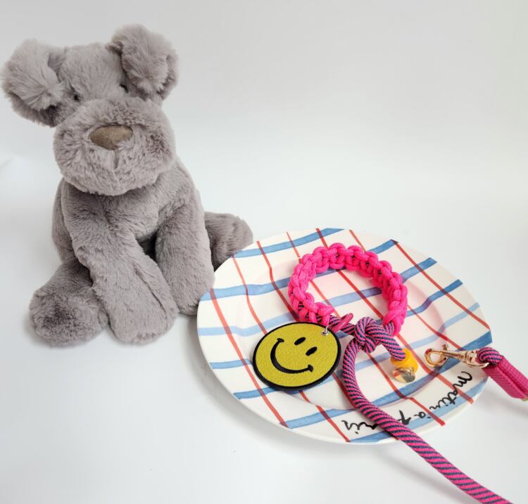 【即納】《CLANGCHOU》ストライプピンクカラーリード1.6M ※現在スマイルチャームがセットになっております。