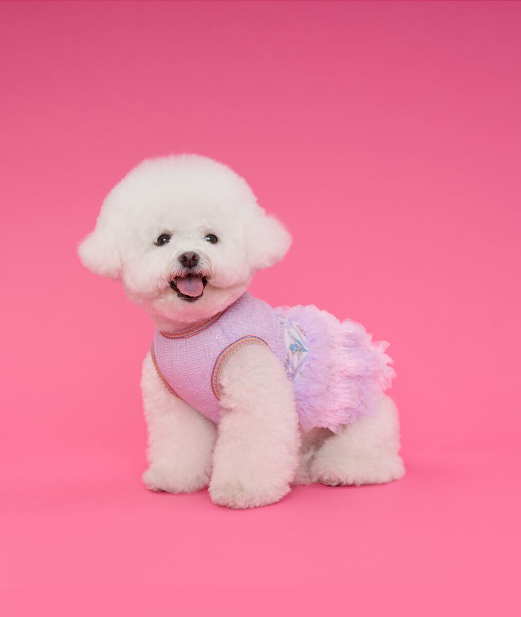 ピュアさとエレガンスを表現したラベンダーカラーのボリュームのあるフリルシルエットでコモコモならではのデザインでお届けする「パープルオルゴン」エレガントで軽やかな感じを込めた服で