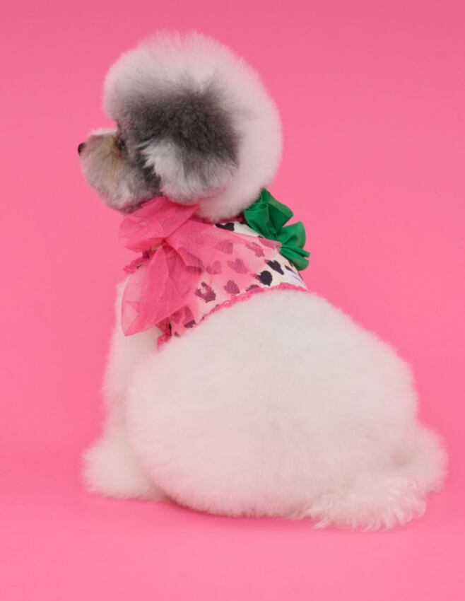 ラブリー&ファンキーな魅力が調和したコモコモならではのカラー感を取り入れたデザインで、ピンクのレースディテールとグリーンカラーの調和、そしてレオパード調の個性的な感性を取り入れた服で、とてもスタイリッシュで着心地も良く、デザインしたコモコモ感性のキッズクロップドウェア。