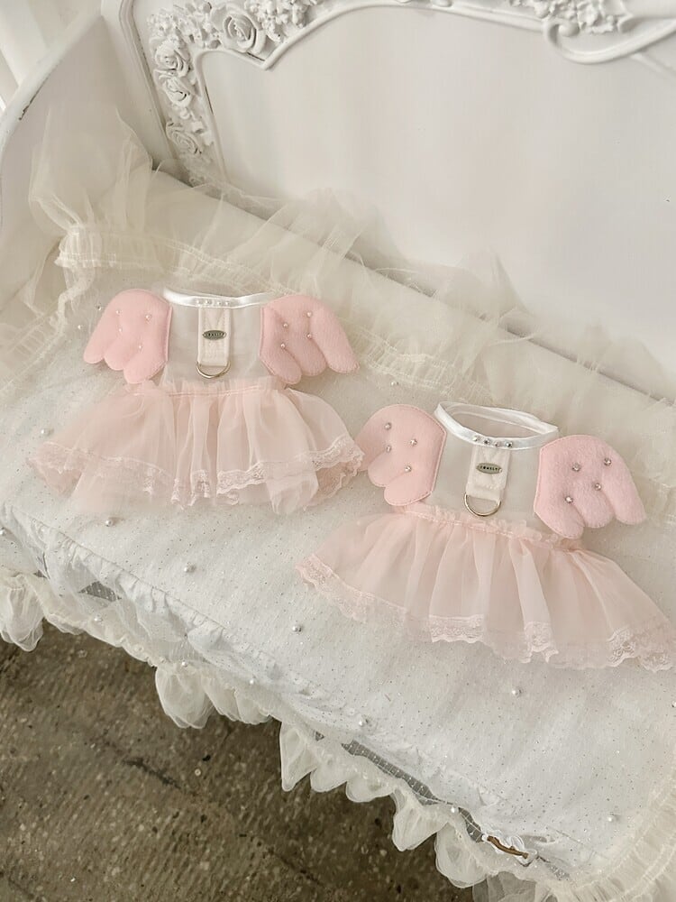 軽く包み込むシースルーチュールの上に翼のように広がるディテールが印象的なロマンチックなドレス型ハーネスです。