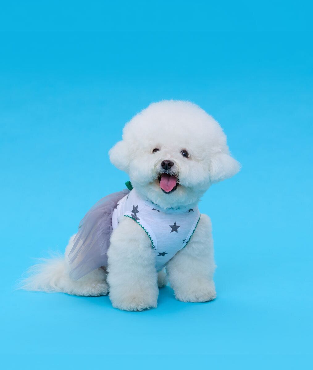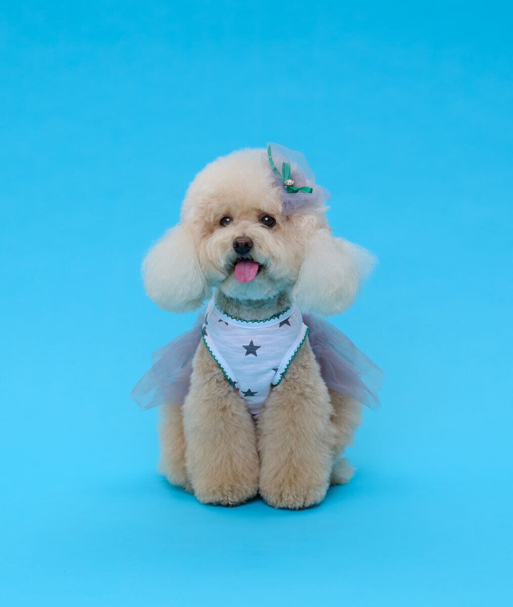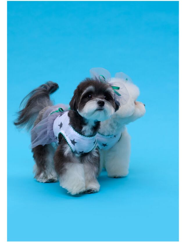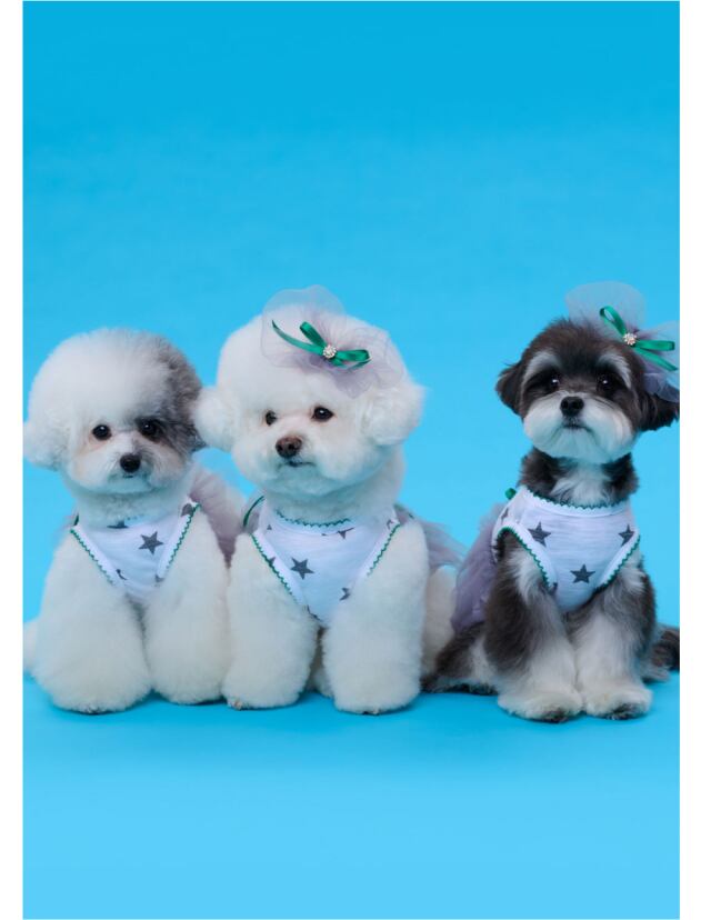 「エクラデイリー」は夜のキラキラという意味の服で、伸縮性と柔らかな風合いの生地と軽いフリルで全体的に快適さでデザインしたデイリームードウェアです。星型のプリントと一緒に描いたリボンのポイントは、服自体をより軽くて高級感を表現してくれます。