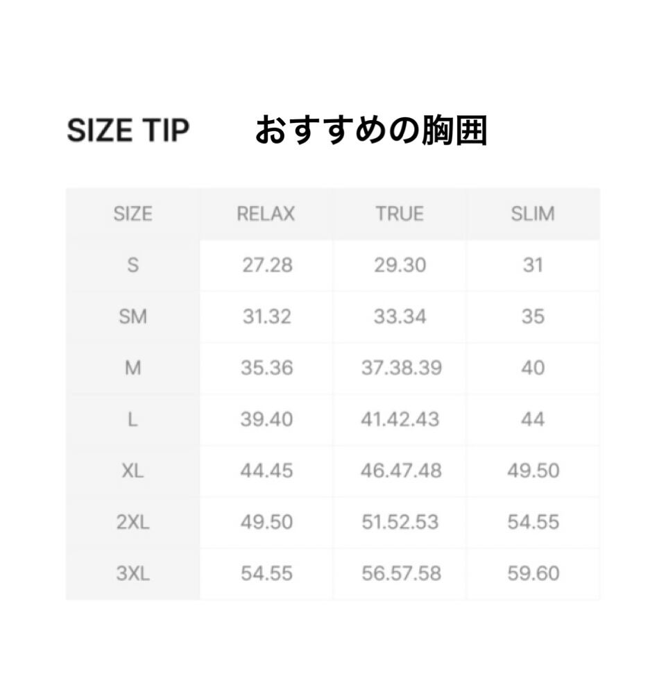 胸囲のおすすめサイズ(size tlp )を見て選ぶと簡単にお選びいただけます。