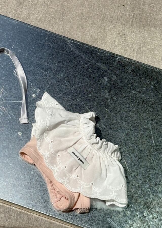 – コットンピンクカラーの肩レースは自然な糸ほぐしディテールで、意図されたデザイン仕上げです。 不良ではありませんので、ご参考ください。