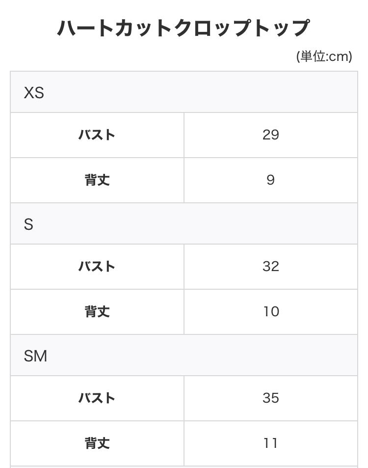 – ハートカットクロップはアームホールラインが深く広く掘られている形状で、サイズが少し大きくなるだけでアームホール部分がゆるくなることがあります