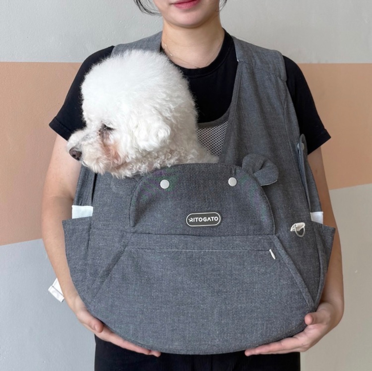 ⚫︎サイドにはスナップボタンで簡単に使用できる顔を出したり、ペットを触れる窓があります。