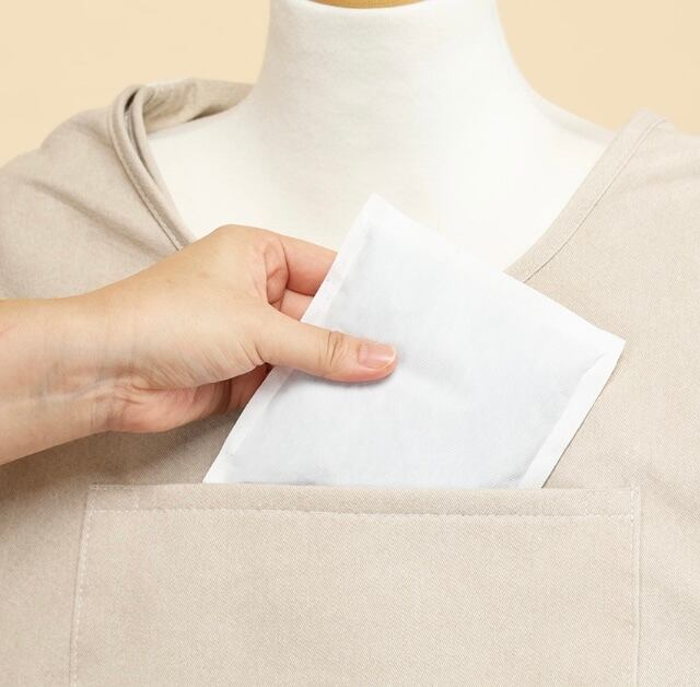 お子さまと接する背面の外側に配置されたポケットに、夏はアイスパックを入れてひんやりと、冬はホットパックを入れてぽかぽかと、前抱っこバッグを快適にご使用いただけます。