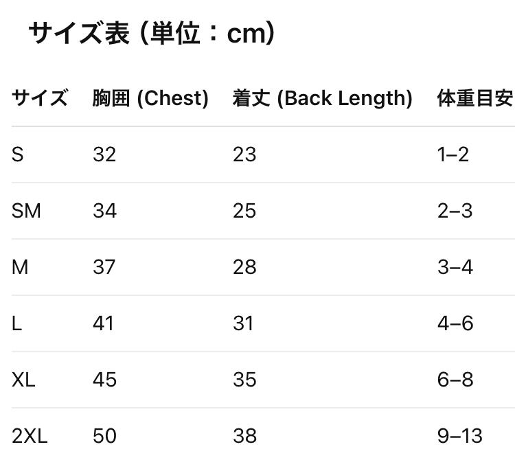 胸囲:32cm / 着丈:30cm / 体重:2.5kg