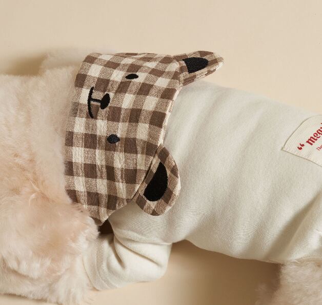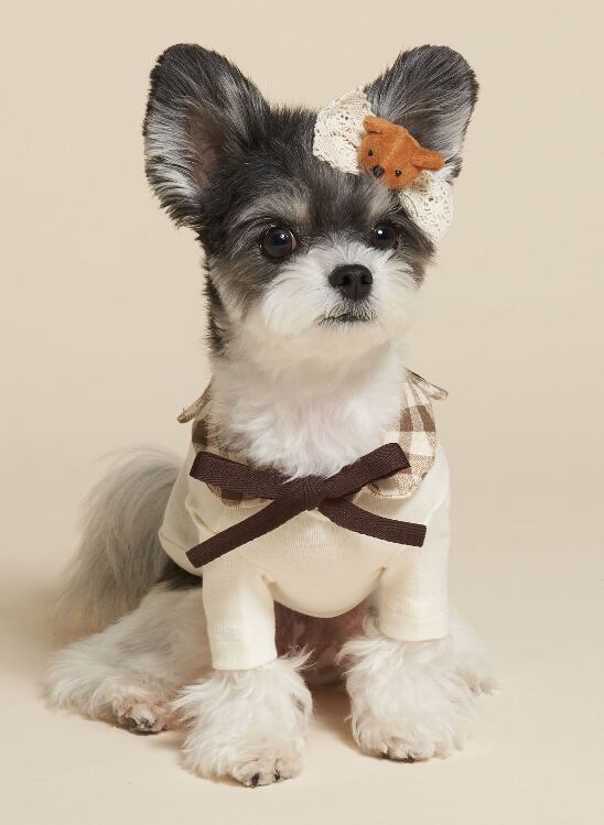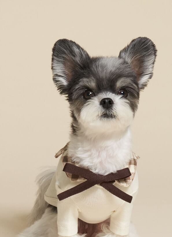 チェック柄の襟がポイントのワンちゃんです。
