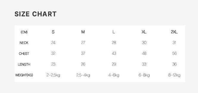 2XL:首回り 31 胴回り 56 着丈 36 体重 8~12kg