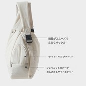 1. フロントバッグからクロスバッグに切り替える際は、内側のストラップを先に外し、ジッパーを開けてください。ストラップだけ閉めた状態では重さに耐えられません。