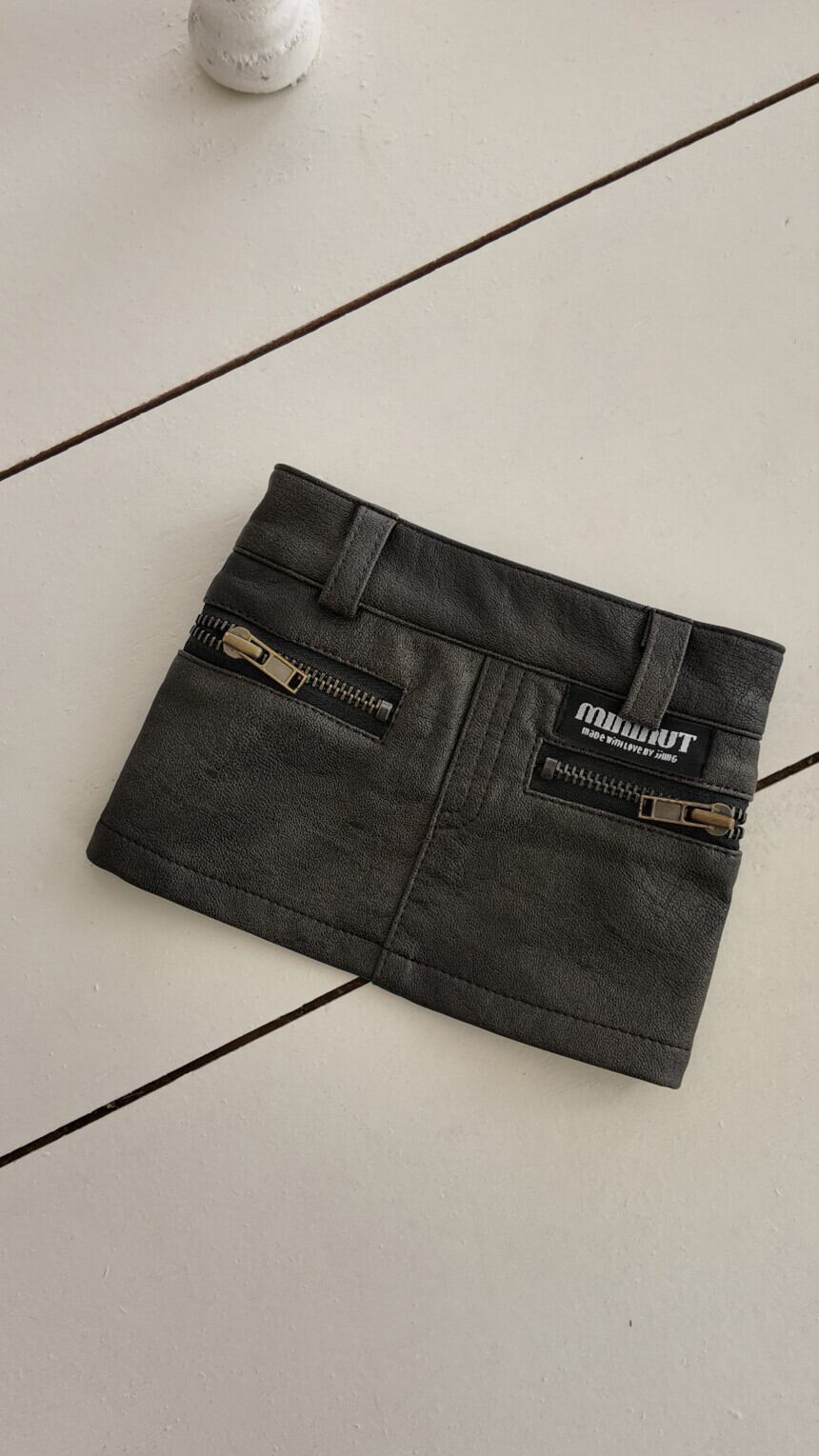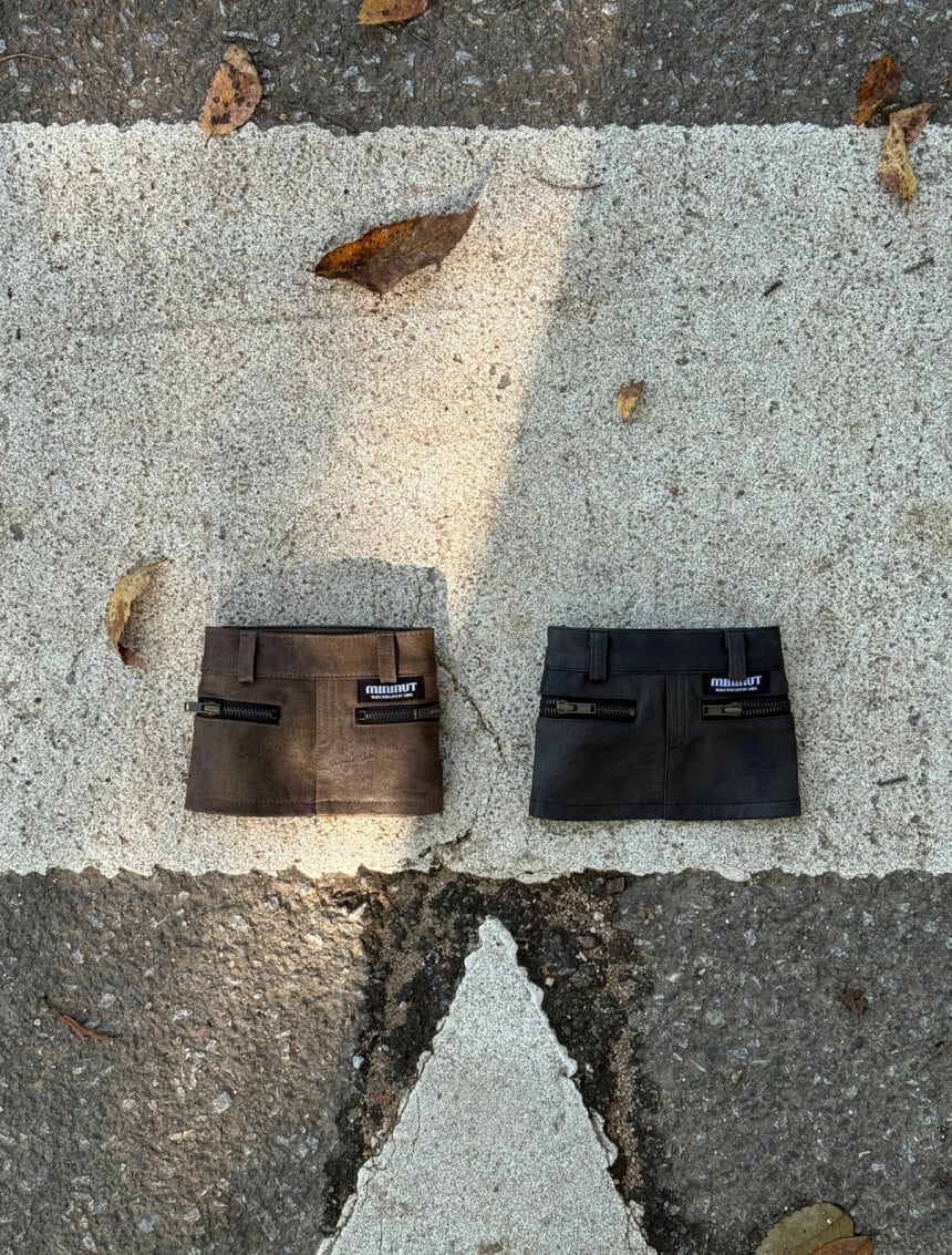 【予約】《mininut》Vintage Leather Double Trouble Skirt [Brown / Black]