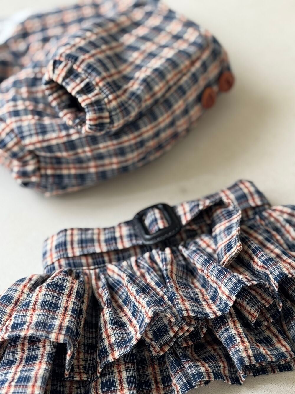 ヴィンテージ感のあるチェック柄の2段ティアードスカート。