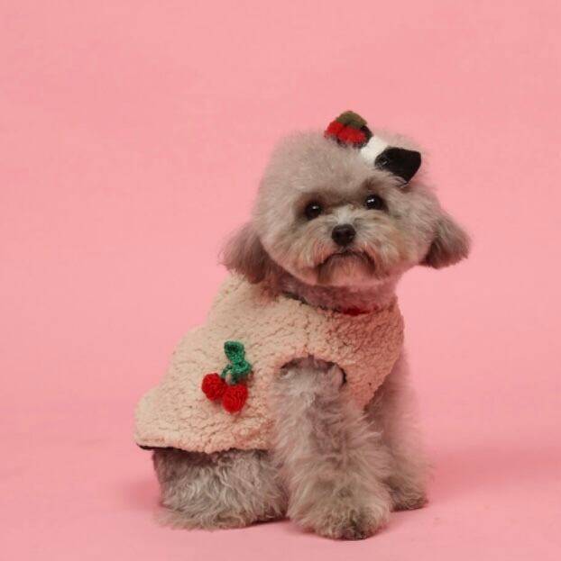【予約】《pets&me》チェリーボンボン ボアベスト