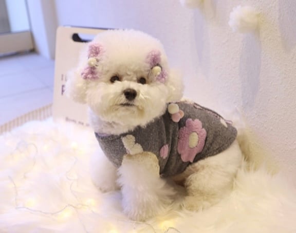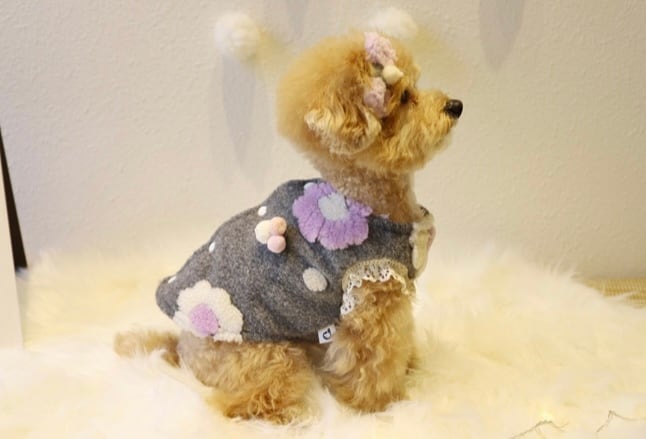 【予約】《pets&me》フラワーポンポン ボアベスト