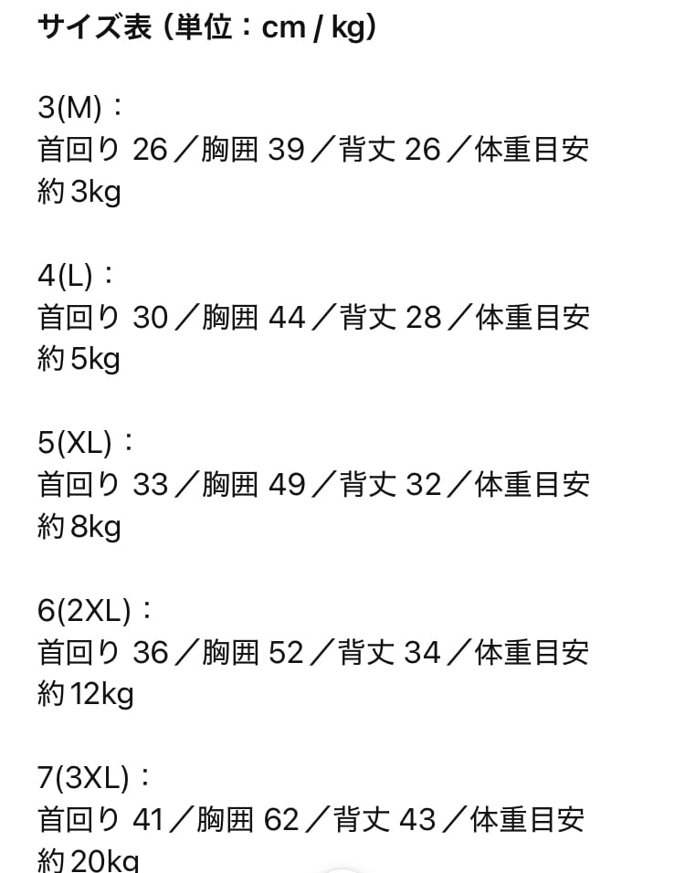 3XL首回り34cm胸囲64cm 丈38.5cm体重12〜16