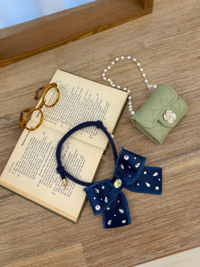 【予約】《Raffine mong》Autumn Bling Ribbon Necklace – Navy