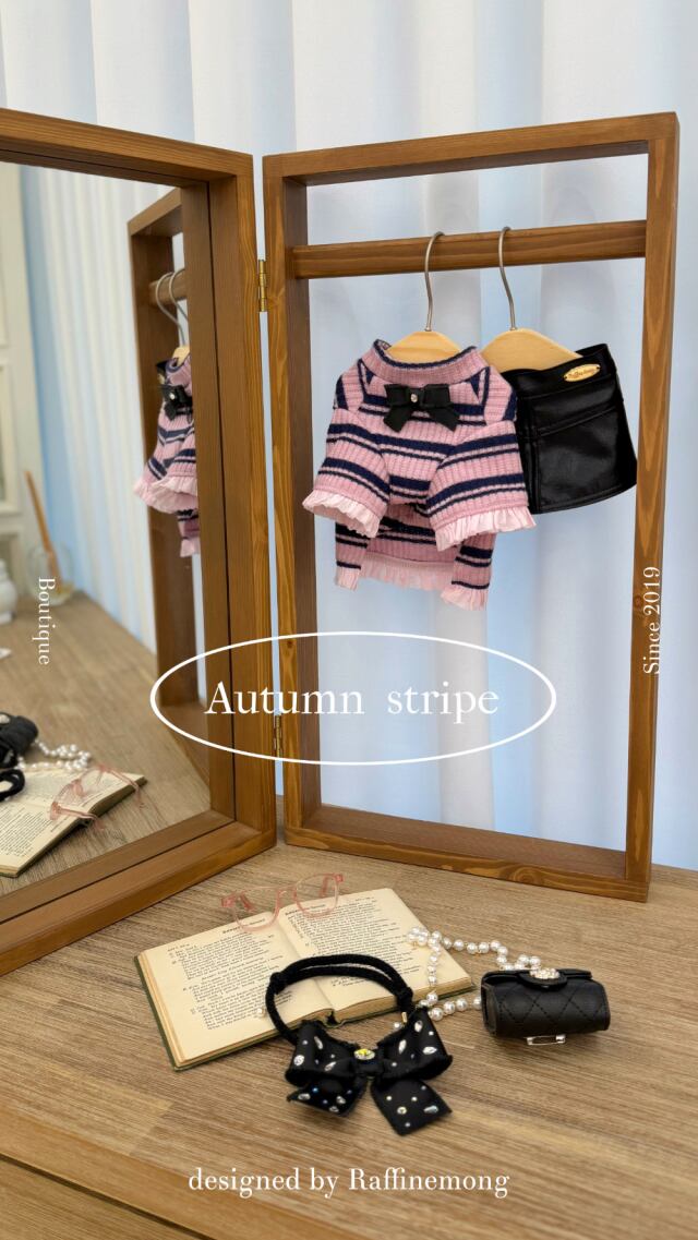 別売り:レザースカート、ストライプリブトップ、ネックレス、リボンピン、メガネ、ミニローズバッグ