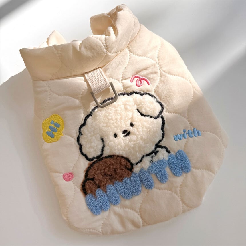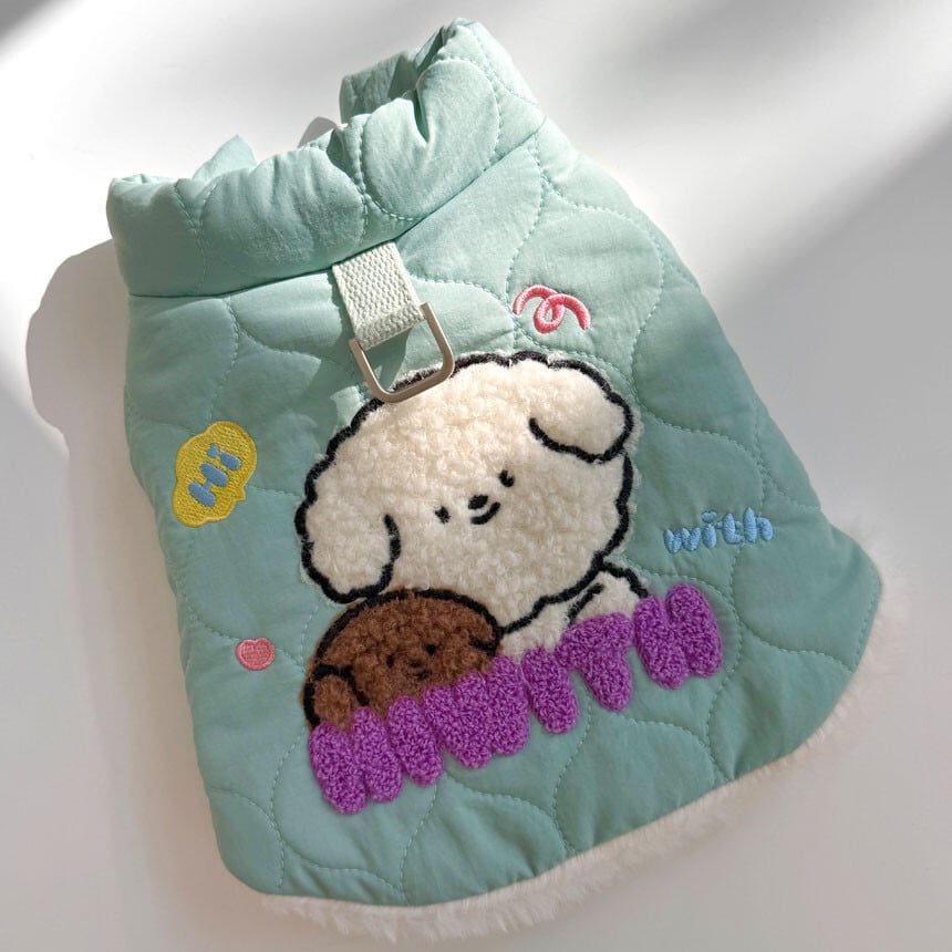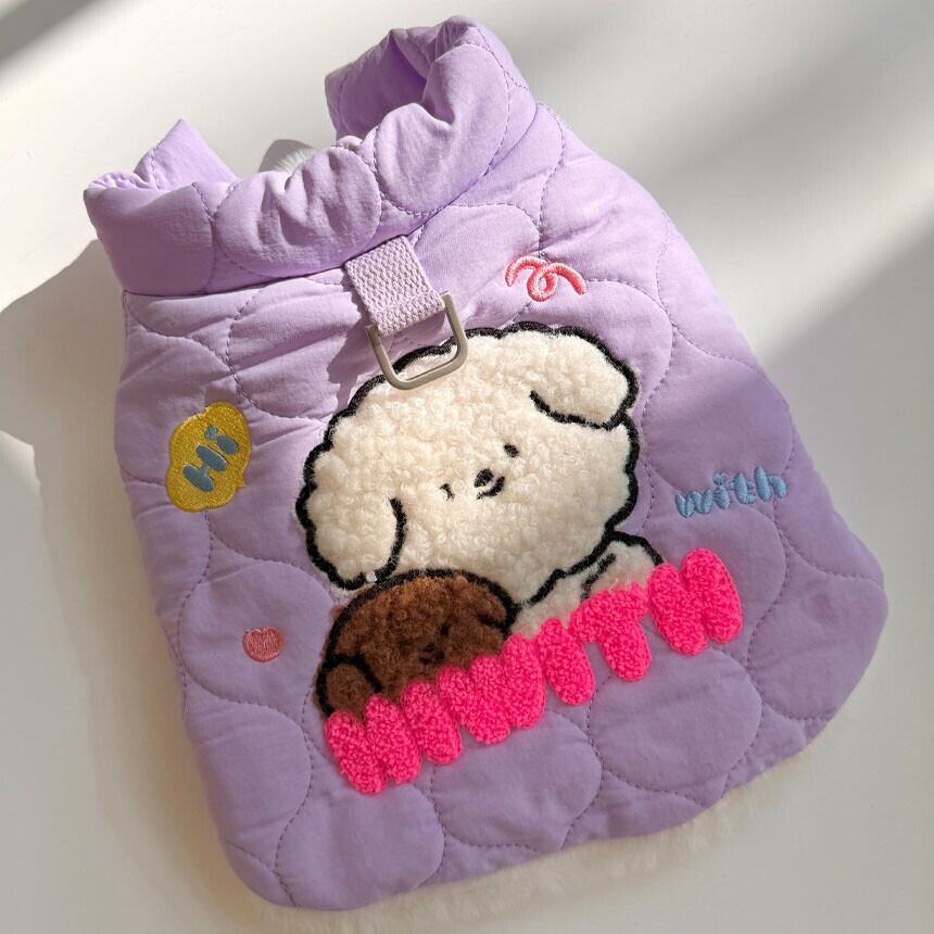 「柔らかな裏地の素材で、うちの子をもっとあたたかく守ります。」