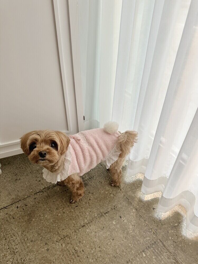可愛らしいうさぎのしっぽと愛犬のお名前を刺繍であしらった特別な一着です
