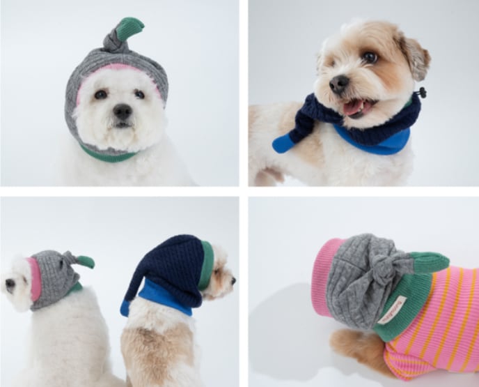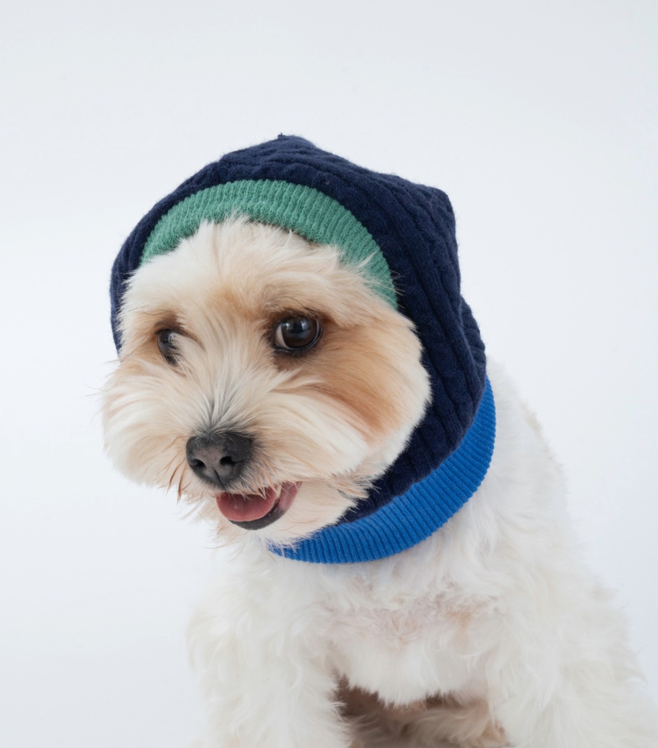 わんちゃんの頭をやさしく包み込むバラクラバ(ヘッドウェア)です。