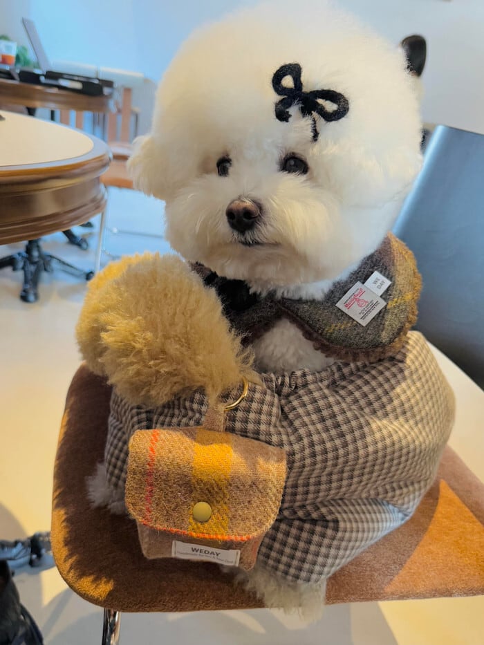 高級ハリスツイード生地を使用し、丁寧に仕立てられたWEDAYシグネチャーのハンドメイドプープバッグポーチです。
