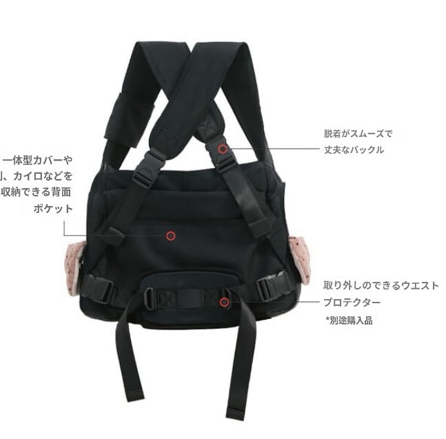 ・フロント/クロスバッグ切り替え用の固定ボタン付き