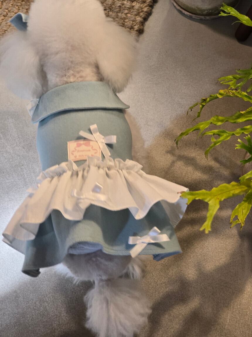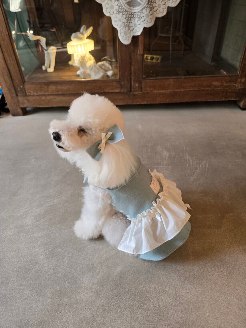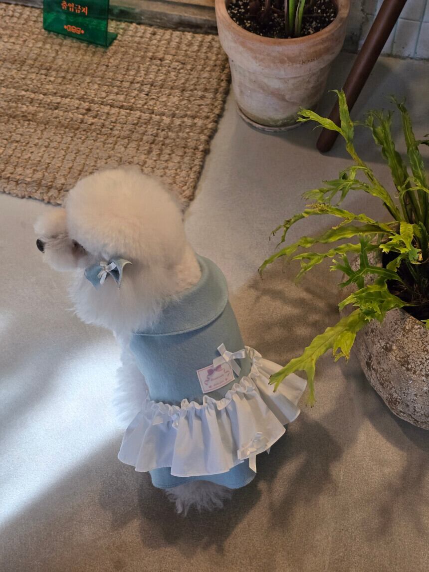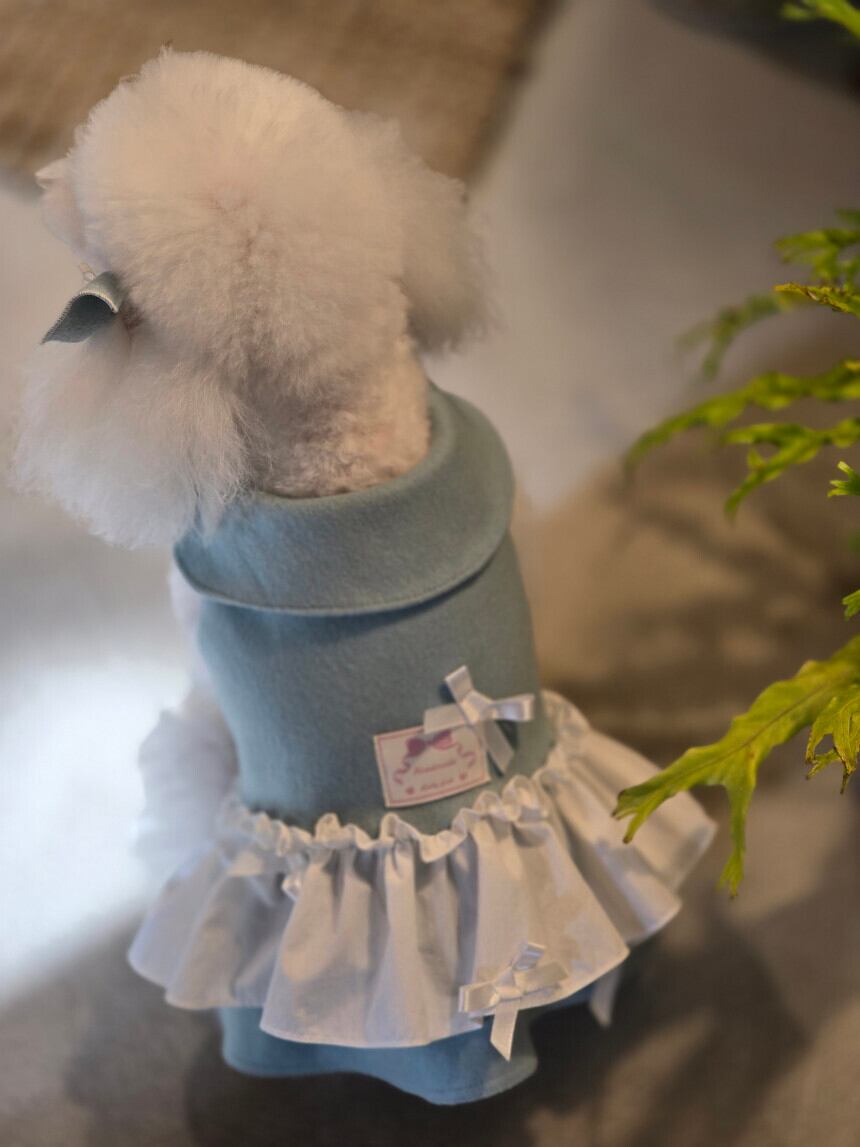 背面のタグと小さなリボン装飾が、さりげないアクセントとなり、全体のシルエットをより上品に引き立てます。