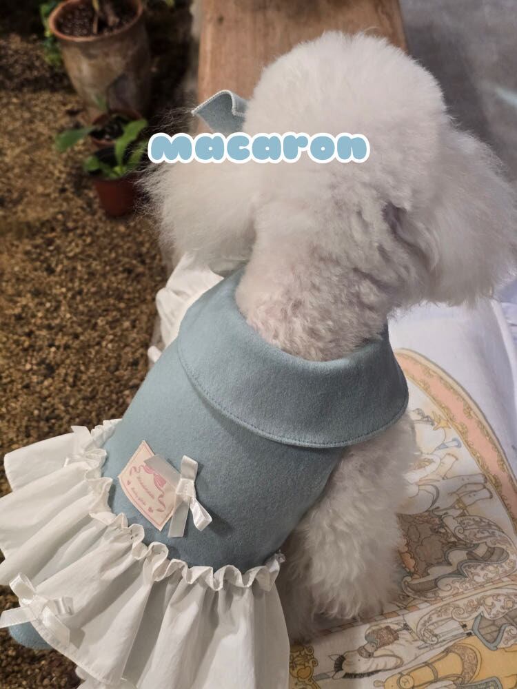 柔らかなパステルブルーが愛らしい印象を与えるマカロンコートです。