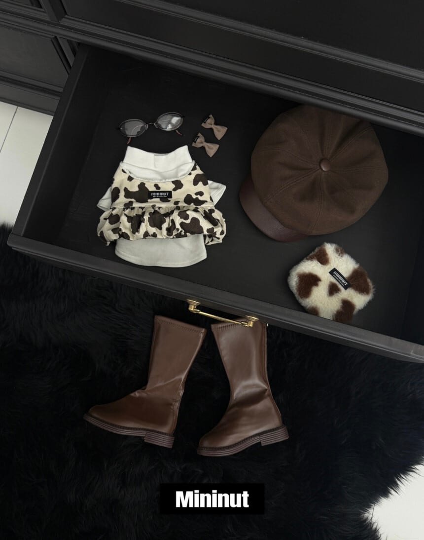 【予約】《mininut》Cow Baby Balloon Dress [Brown / Black]