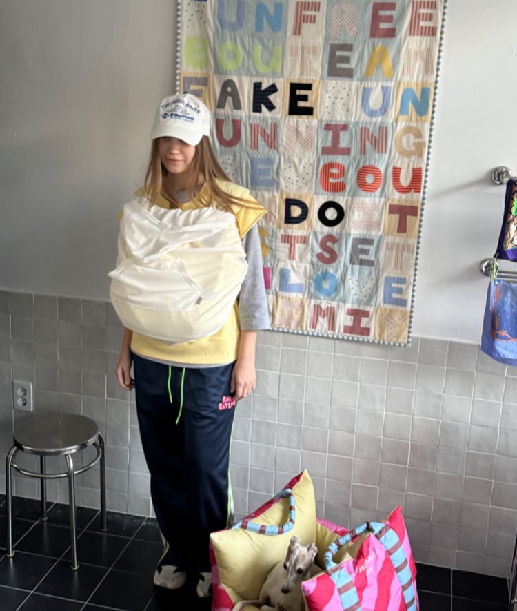•体格が大きい子や、顔まわりが大きい子のために、フードを利用してゆったりと覆えるようになっています。