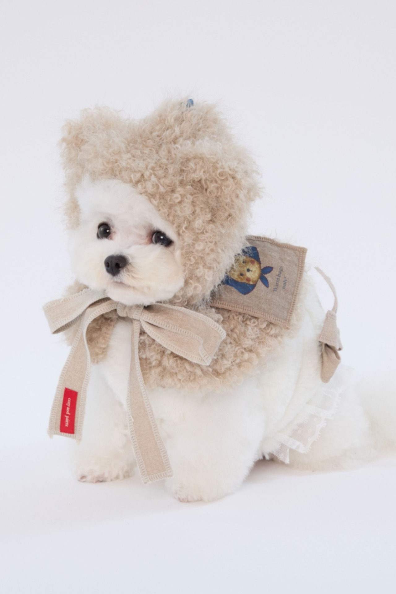 •顔周りを優しく包み込む、丸みのある柔らかいテディファー素材