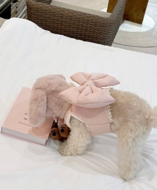 首輪を使う時はリングを隠して使ってください。リボンパディングハーネスは衣類なので引っ張り癖のある子や力の強い子は首輪をおすすめします。