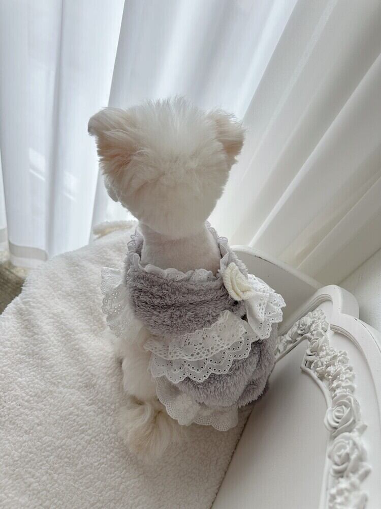 やわらかくふんわりとした両面ベルボア生地を使用した、ロマンティックな雰囲気のサスペンダースカートです。