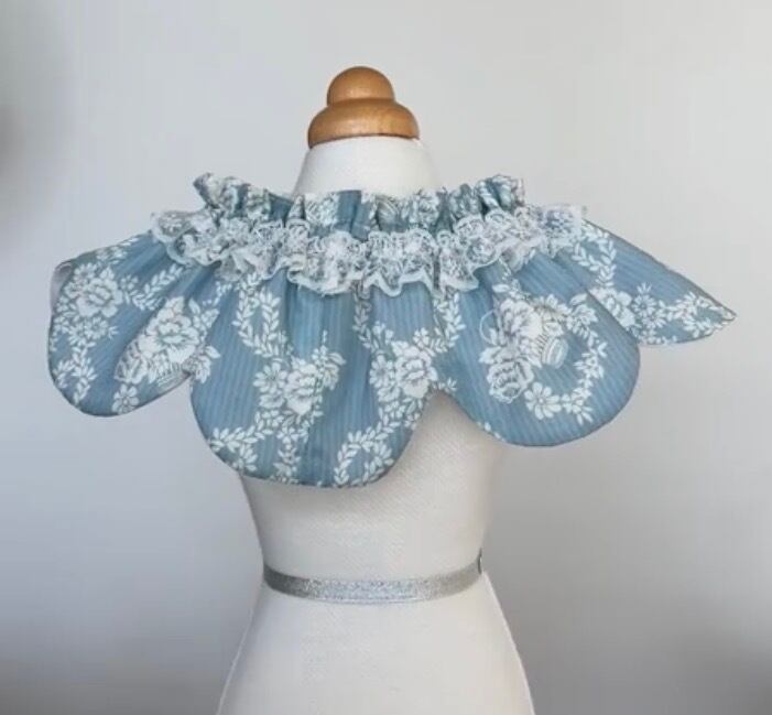 英国リバティ生地で仕立てた、WeDayのシグネチャー「花びらケープ」シリーズ。