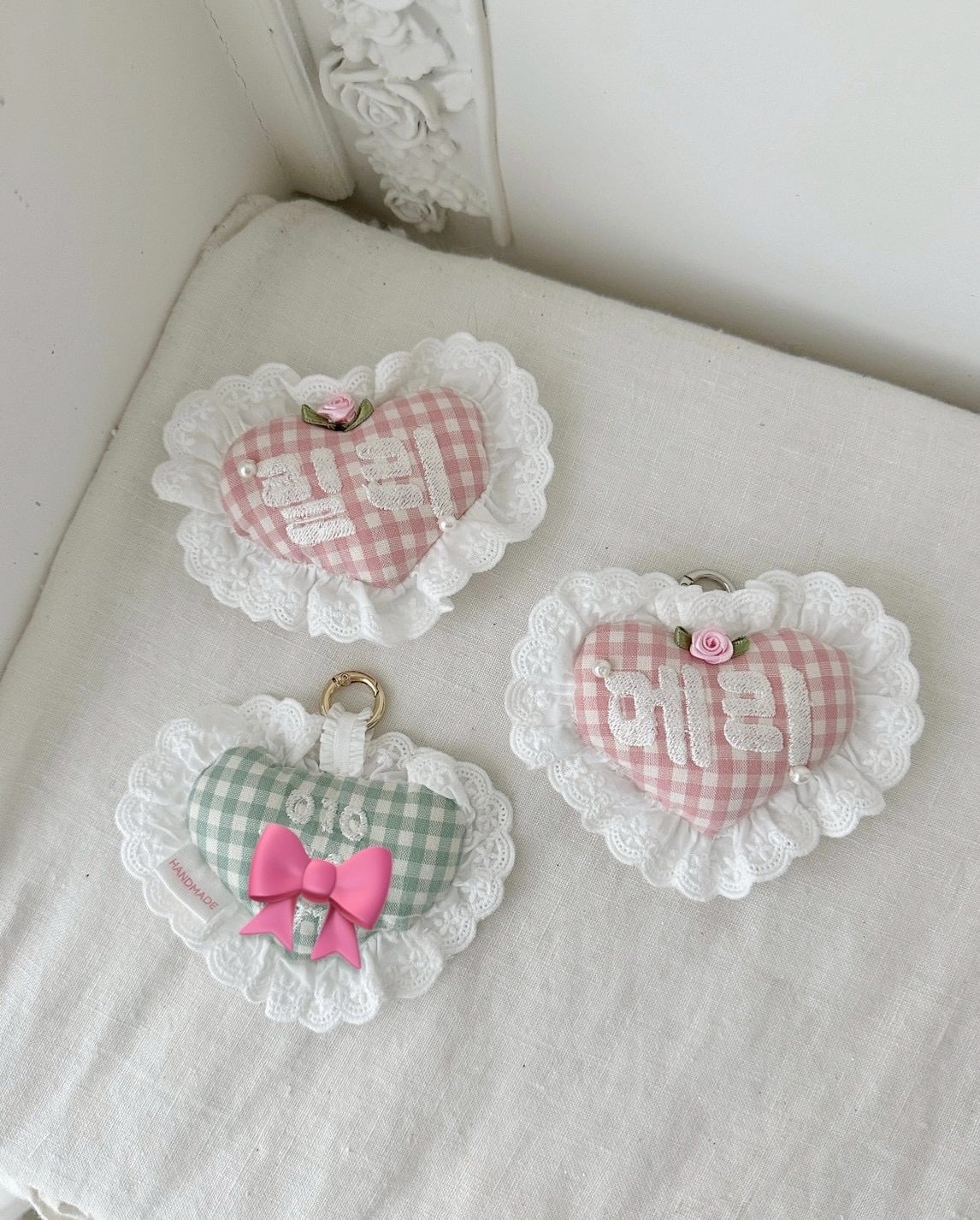 【予約】《COMELY》Lace Heart Check Name Tag ( 2 color )