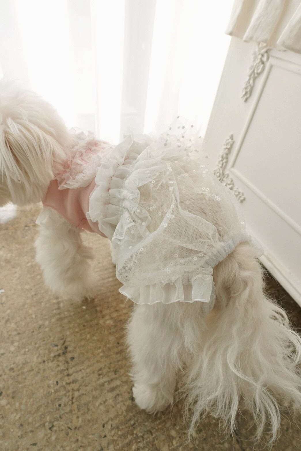 チュールを重ねたデザインが合わさり、