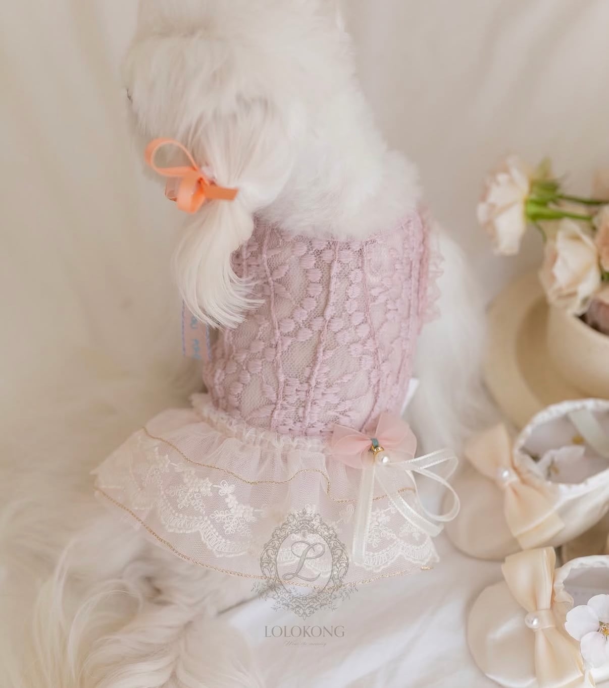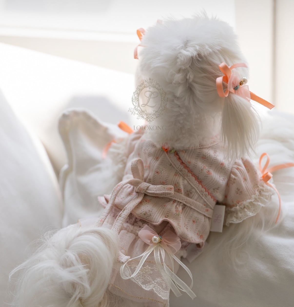 パウダリーなカラーの上に、繊細に染められたレースとトーンオントーンのチュチュが重なり、さりげない華やかさを演出。サイズが上がるにつれて段差のある立体的なシルエットもお楽しみいただけます。