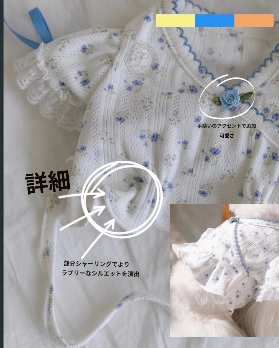 韓国製コットンスパンデックスのアイレット生地を使用し、伸縮性があり快適な着心地。ウエストのシャーリングがすっきりとしたシルエットを演出します。