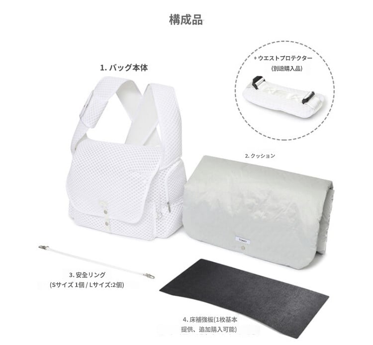 A. X字型ストラップにより負担を分散し、別売りのウエストプロテクター併用でさらに快適にご使用いただけます。