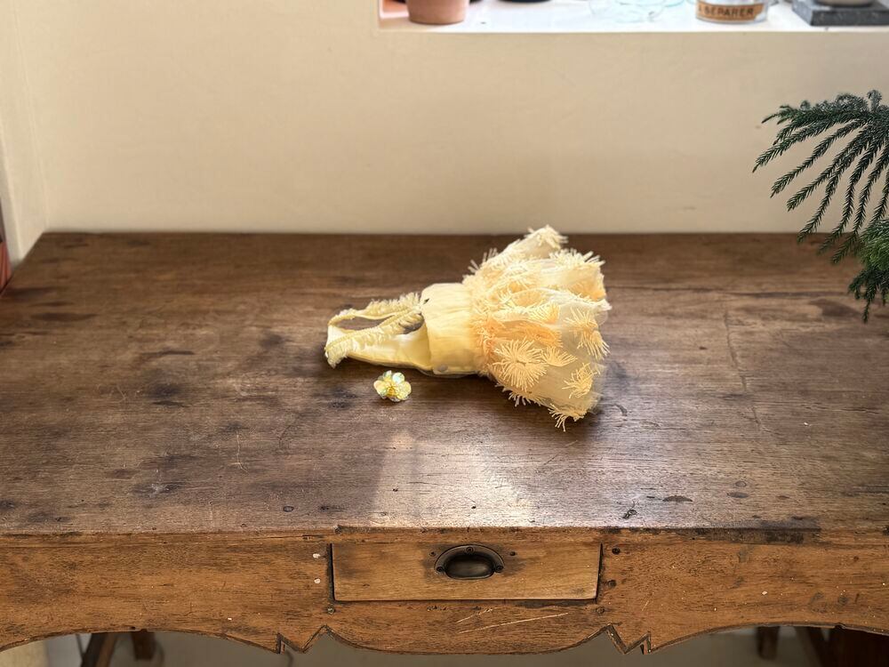 今回のパリチュチュは、最上層にあしらわれたフラワーディテールにより、より立体的で特別感のあるシルエットに仕上がっています。