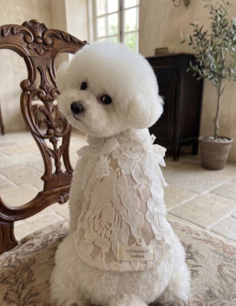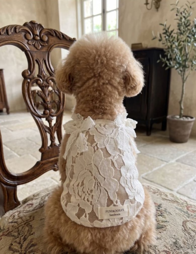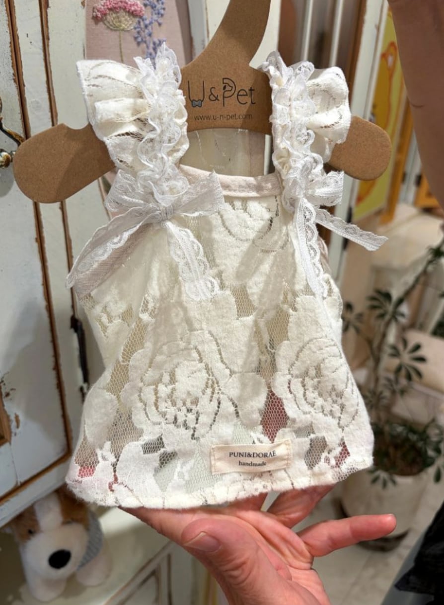 クリーミーなカラーはどんな毛色にも自然に馴染み、やさしく華やかな印象に仕上がります。やわらかなレース素材で、触り心地の良さも魅力です。