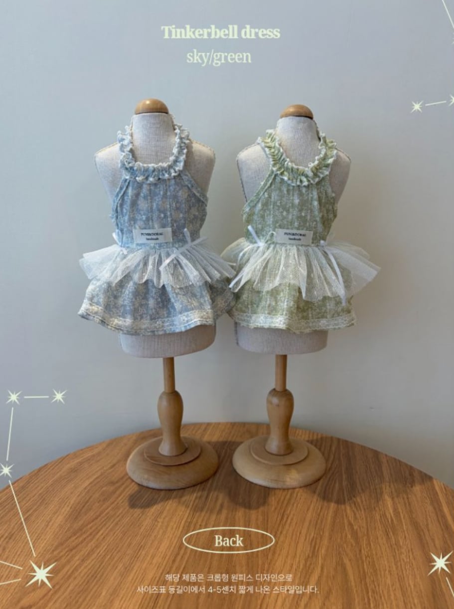 森の妖精のときめきをイメージした、やさしく愛らしいムードのドッグドレスセットです。