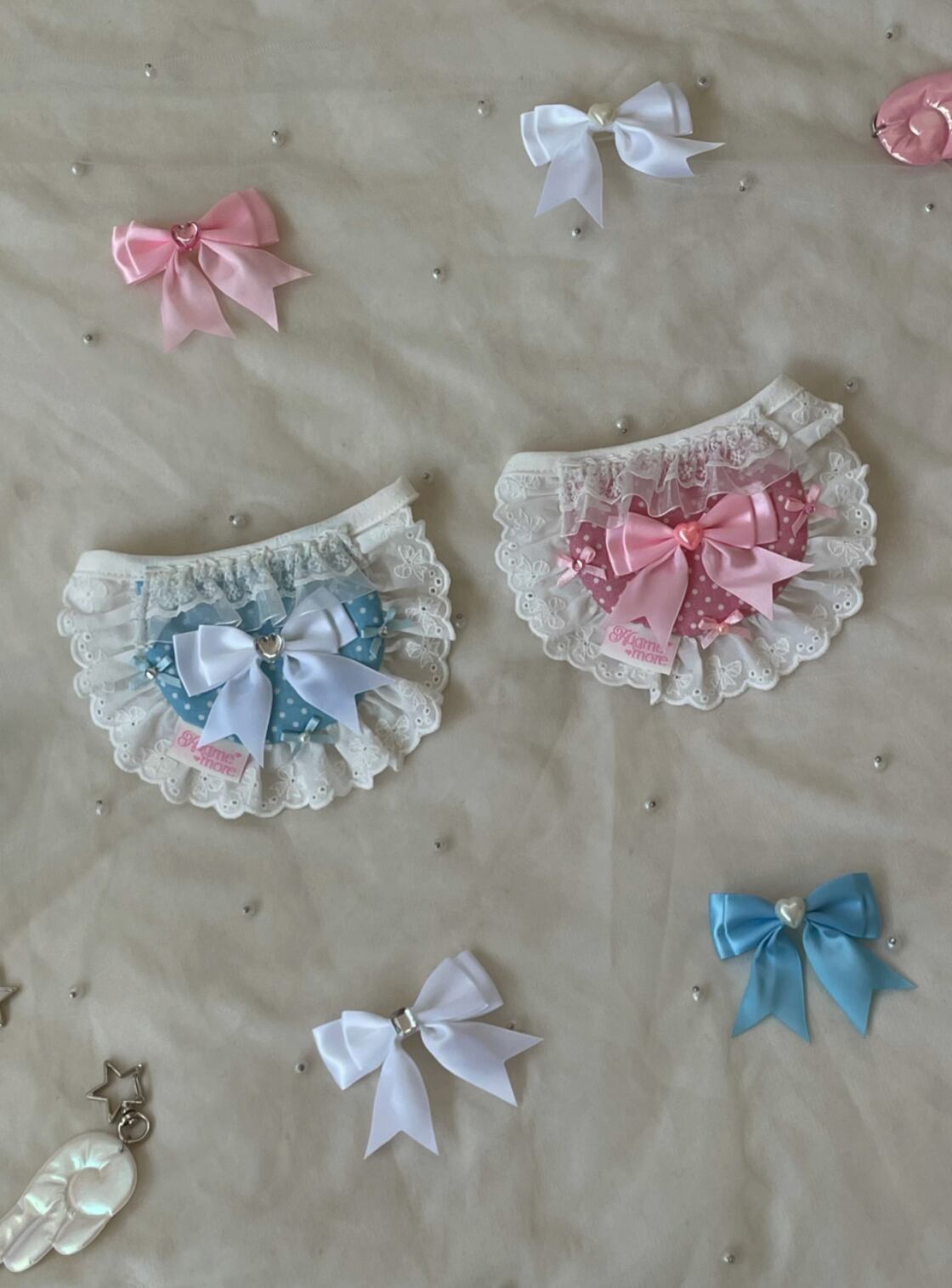 ・ハンドメイド商品の特性上、リボンの形状やレースの長さなど、すべての商品が完全に同一ではございません。