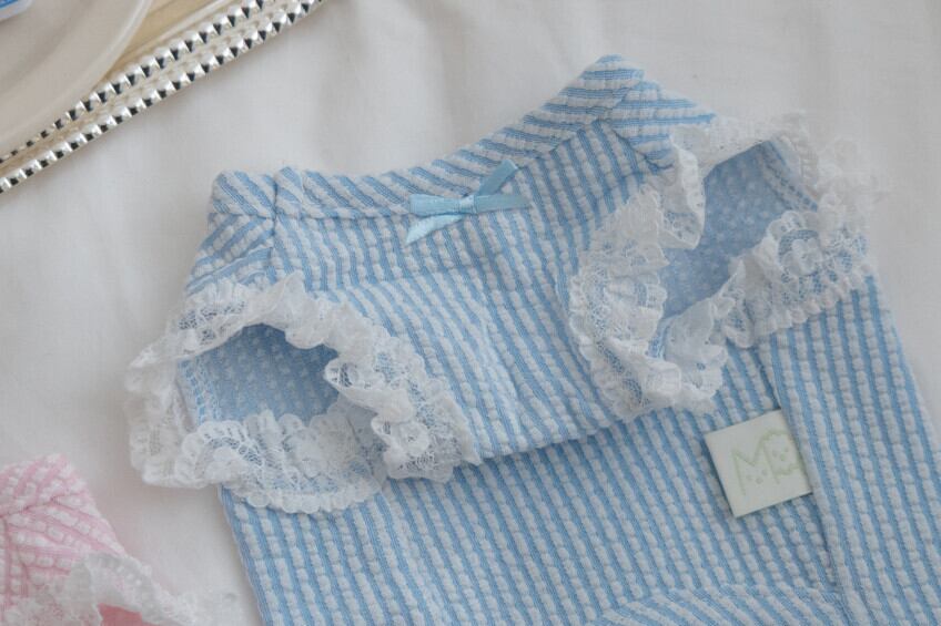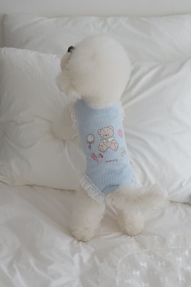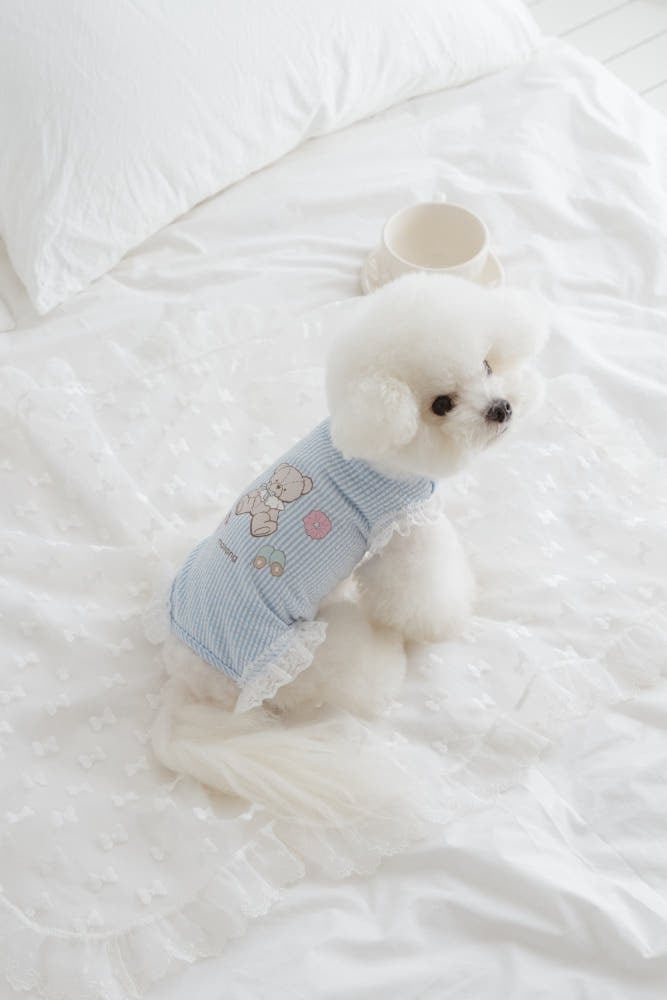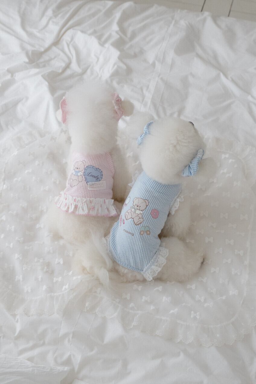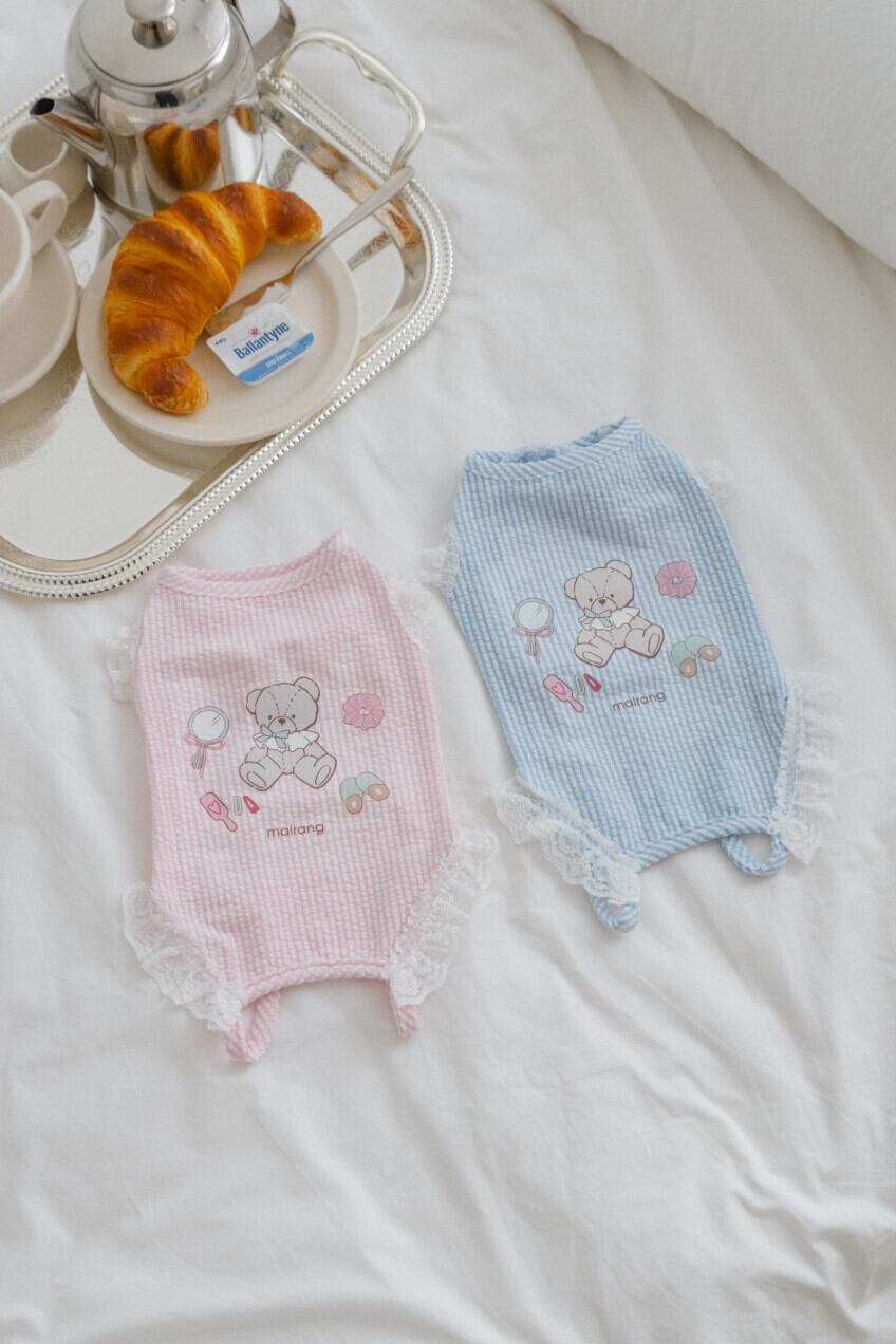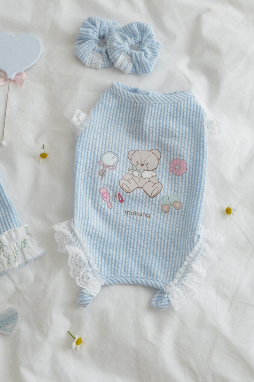 【予約】《malrang》Bear Powder Romper - Cotton Blue