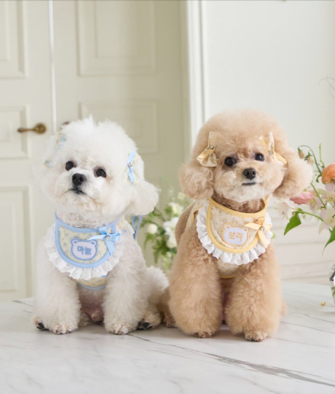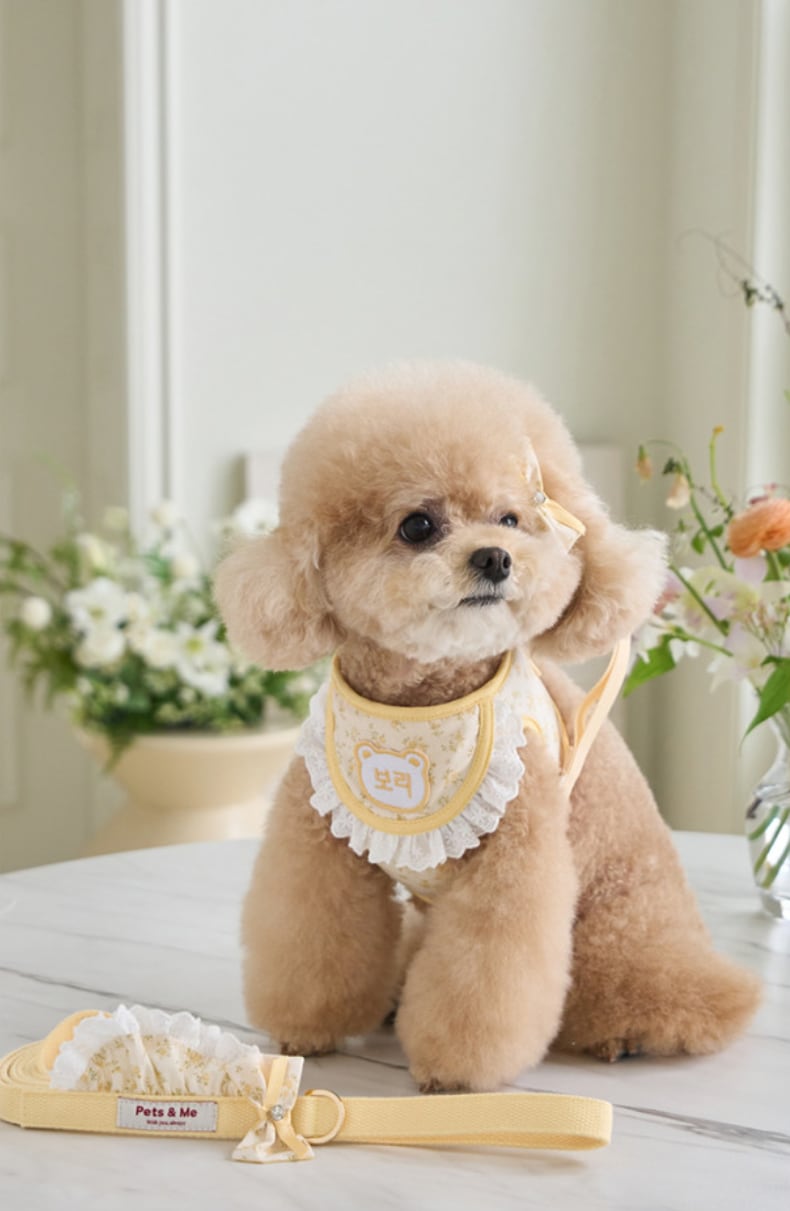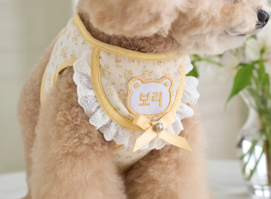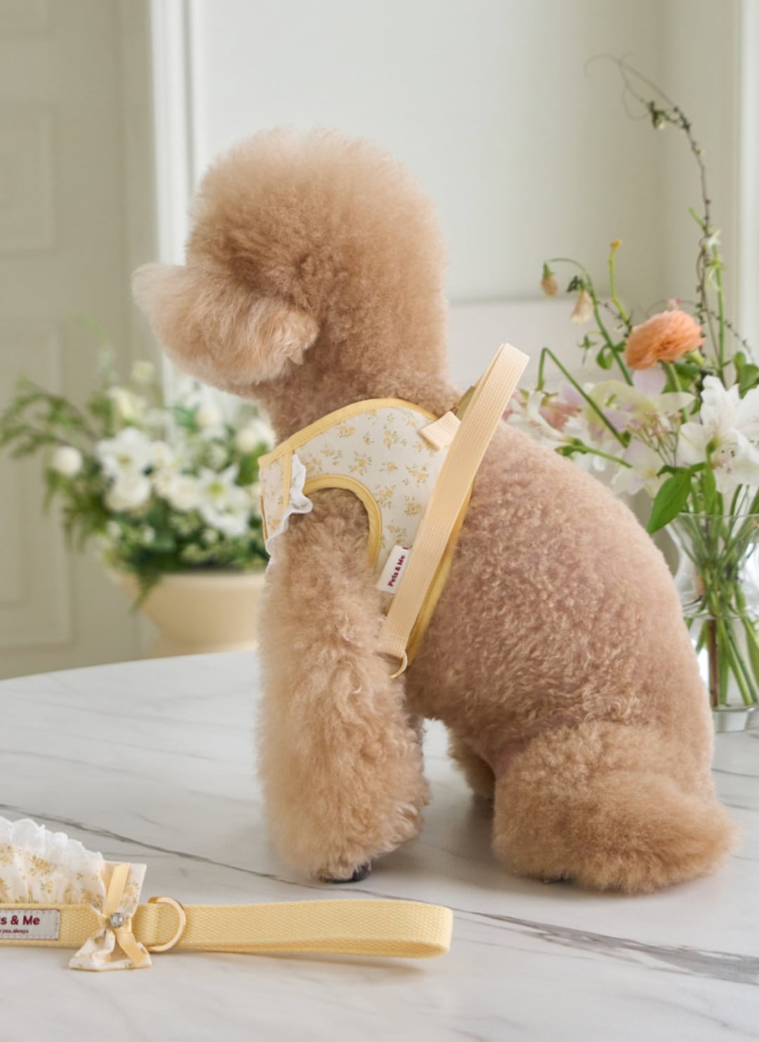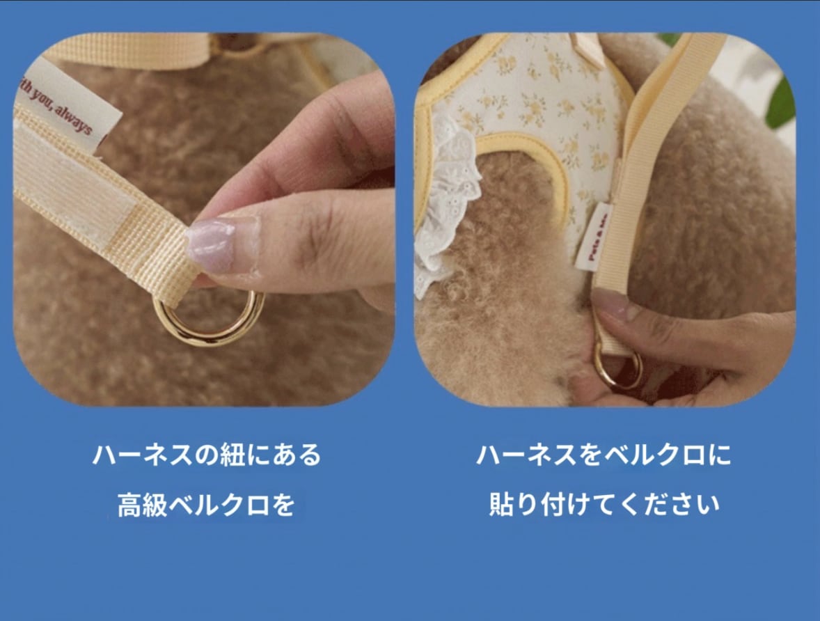 ハーネスひとつでコーディネートが完成する、愛らしく上品な仕上がりです。
