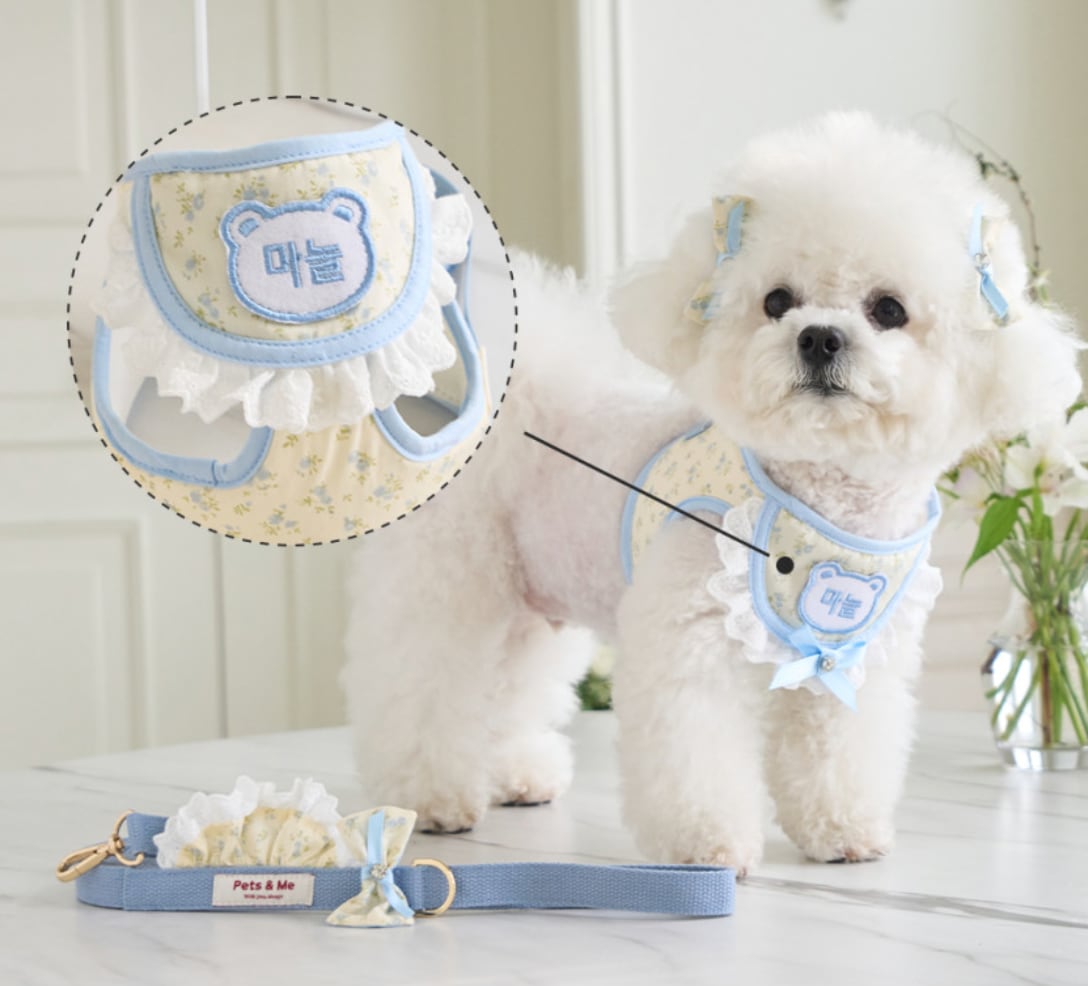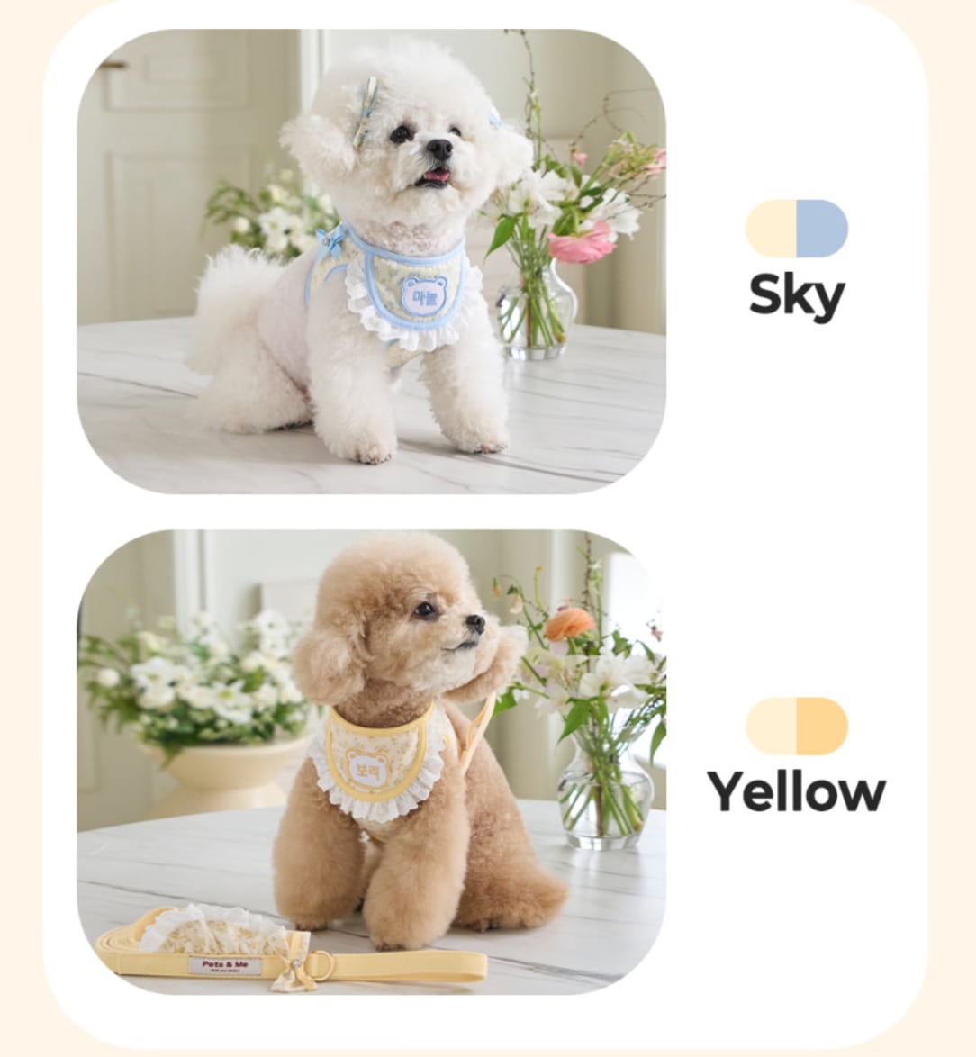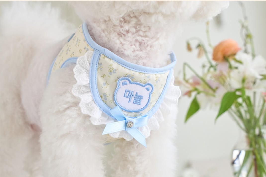 ハーネスひとつでコーディネートが完成する、愛らしく上品な仕上がりです。