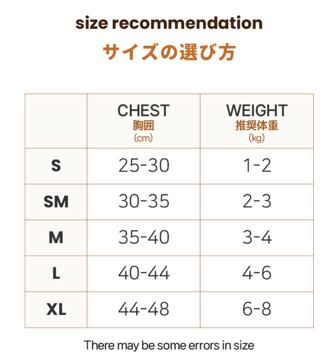 XL 胸囲50cm 長さ14cm 体重 6〜8kg