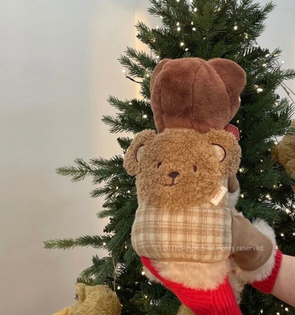 【即納】《meaningless》チェックリボン 帽子くま brown